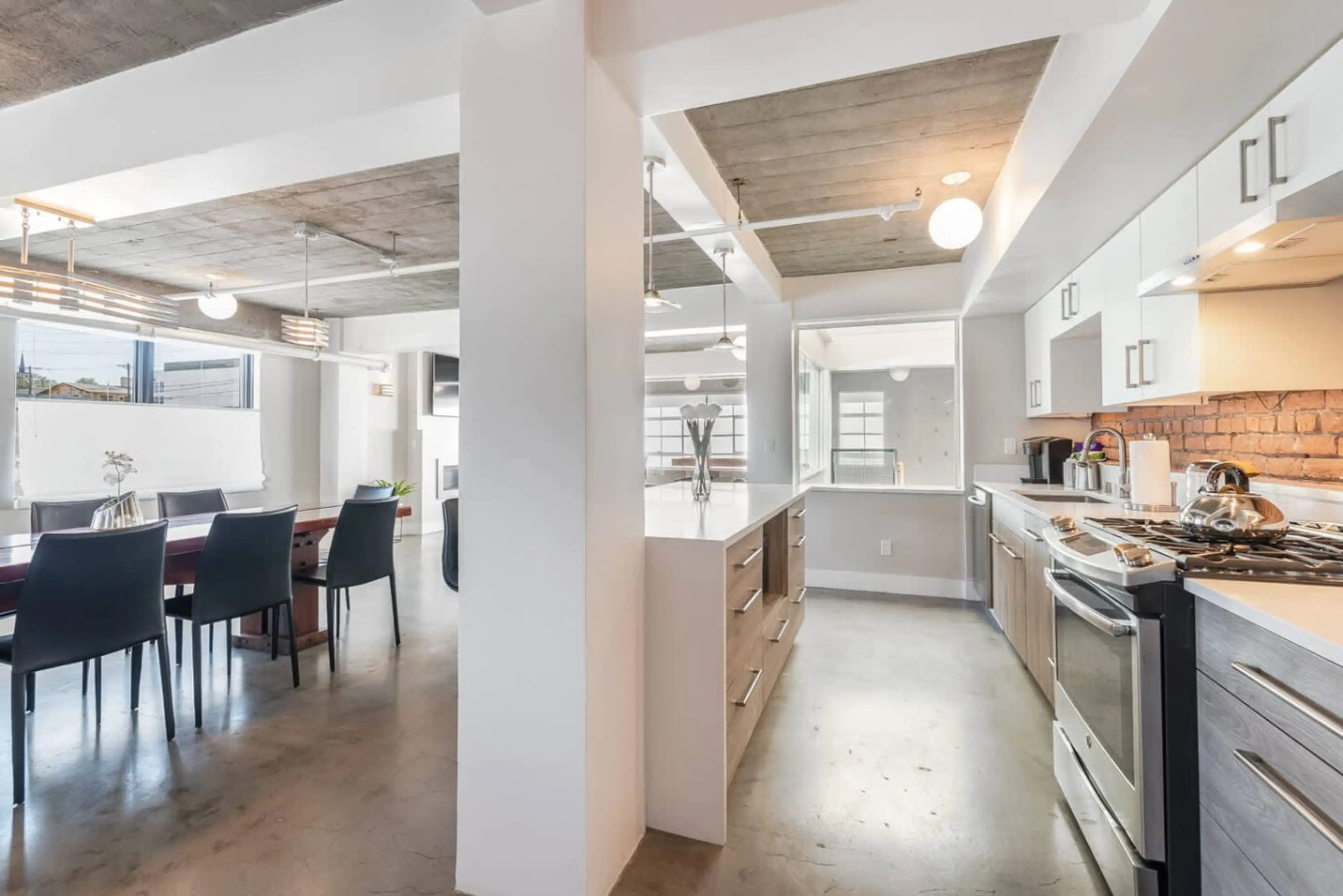 The ULTIMATE location to experience Tacoma! Enjoy a spacious, private, fully equipped, and modern 3BR/3.5BA penthouse located in the heart of Tacoma's historic Brewery District. Beautifully exposed heavy timber with concrete floors and wood ceilings. Enjoy striking panoramic city and mountain views...